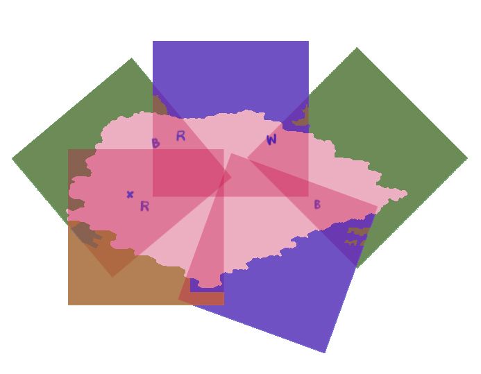 タイムヒント ゲームの進行と、このゲームの罠を感づかせることが主な目的。 0分(これが最初のヒントだという宣言が必須) 宝の地図の解読法といえば、あぶり出しやリドル、暗号など様々な物があります。 今回の地図はそれらと同様に、手元に本物の地図があったとしたら・・・と想像して解いていただけたら幸いです。 なお、そうしていただけたら、案外簡単に解けてしまうかもしれません。 5分 この地図のかけらは一種のジグソーパズルで構成されています。 また、地図はかなり正確で、地図の尺度も全て統一されております。 10分 地図のかけらにはダミーが混ざっています。 なお、“どうしても地図で解けそうにない”と判断された方は、自分の足で全フィールドを巡ってしまう方が早いかもしれません! ただし!それで見つかるかどうかは、あなたの運次第でしょうけど。 15分 それぞれの地図のかけらは、必ずしも上が東、西、南、北のいずれかを指しているわけではありません。 また、地図のかけらを裏返して使うことはありませんし、 地図に使われている略字が指す内容は統一されております! 20分 150×150ピクセルという見た目の正方形の枠にとらわれず、 別の物を基準にしてジグソーパズルのように組み立ててください! 25分 別の物=黒い模様 30分 今回イベントで使う地図のかけらは、“Tales Walker”という攻略サイト様(http://letstw.cafe.coocan.jp/)の物を元に利用させていただいたものです。 35分 “R”はレッドベリー、“W”はホワイトベリー。そして、“B”は……。 きっと、ブデンヌの略(ぁ いや、冗談ですけどっ!w さてさて、今度は真面目にヒントをw “B”が記載されている地図は必ず使いますが、そもそも“B”が示す地点はたったの4箇所だけです。これがヒントw *最初の文は“B”という文字が、実は“ブルーベリーではない”、と勘づいて貰えたら勝ち。なお、今回用いている“B”は橋(bridge)のこと。 40分 看板のひとつはセルバス平原1に存在します。 45分 半角英字が書き込まれている地図のかけらと、全角英字が書き込まれている地図のかけらは、それぞれ別の地図を描き出します。 50分 地図のかけらに含まれているダミーは、“KUMA―(´(・)`)”と描かれているものだけです! 55分 これらの地図のかけらは陸地と川を同じ色で作っているようで、白と黒の色は、そこがフィールドかどうかだけで色分けされています。 60分 かなりいまさらですが、“X”が看板のある場所を示しています。 65分(ラストヒント:状況を見て多少早めに出しても良い?) それでは、これが最後のヒントとなります。残りの看板はセルバス平原7にあります。ヒントは以上です。 これらのヒントを元に地図のかけらを組み立てると、 セル1 セル7(難易度高めに設定、興味があったら解いてみるのもいいかも?) の2つの地図が表示されるようになっています。 *プリントアウトして、自分でできるかチェックもしてみましたので大丈夫なはずです。 今回のコンセプト 地図物~。 今回は12ピースしかない地図のかけらをうまく組み合わせると、2枚の地図ができる仕掛け。見た目はジグソーパズル風にして、素直に解こうとすると最初から違和感バリバリになるようセッティング。 それら2枚の地図がセル1(白:フィールド、黒:フィールド外)とセル7(白:フィールド外、黒:フィールド)で色の役割を変えてみたり、看板に「騙された!この看板は(ry」とタイトルにもじって本物の(最終目的地となる)看板を堂々と隠してみたり……。 難易度的にはセル7を示す地図の方が難しいのですが、逆にセル1を示す地図を簡単にし、余った残り6枚だけで難しいセル7に挑んでもらおうとしているというそんな試みも。 色々実験してみたいのもあり、結果としてはやぶさかではありますが、ちょいと強引なやり方でルールを作ってしまった感が。 個人的には、「Fake or True?」あたりのレベルがしっくりくるなぁとは思うのですが、中々うまくはいかないものです。 当初は、オリエンテーリング風にしてもいいかなぁとは思ったものの、お手伝いさんが大量に必要だったり、1つの問題に引っかかった場合それ以上進まなくなる事態が起こりやすかったり・・・・・・。それらに、どう対処するべきなのかを色々検討したところ、キッパリと止めることに(´―`;)チュンチュン あとは、暗号を元に、寸法やら角度、定規を持って云々やるのもいいとは思ったのですけど、これまた難易度が高くなりそうだったのでパス。 それと、「ところがどっこい」と同様に、参加者に露店を建ててもらい、そこにヒントを表記することで白地図にマーキングやら線引きするのも楽しいかな?とは思ったものの、似たようなルールをやり続けるのもなぁ、とあえて今回のややこしい形式を実験でやってみることに(ぉぃ。 この場合は、ヒントとかで得られる地図の座標を1度だけ細かく宣言してもらい、本当に宝を埋めた座標とどのくらい違うかで賞金が変わる?とかそんな感じになるかな?しまった。こ