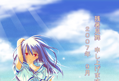 DWLのイベントですっかり忘れ去られていたらしく、そのラフを発見したついでに色を塗ってみたのです。 まだ、残暑見舞いならセーフだよね!? ねっ!? ((’’;≡;‘‘)) ねっ!? 普段、絵を描く時は“人物”→“背景”って描いていて背景で力尽きてしまうので、 「逆に描いてみたらどうか!」と“背景”→“人物”の順で作業開始。 ……(そうして数時間経過)……。 結果。 “人物”で力尽きました......orz (ダメダメ 他にも、このブログを夏仕様(今更!?)にしようとして失敗してたりとか、結果を伴わない苦労をたっぷりしてたりしてます(==;)あぅー。 そろそろ、リニューアルしたいんだけどね。一回、ちゃんとHTMLの勉強しないとだめなのかしら?; とほほ。