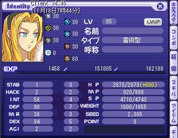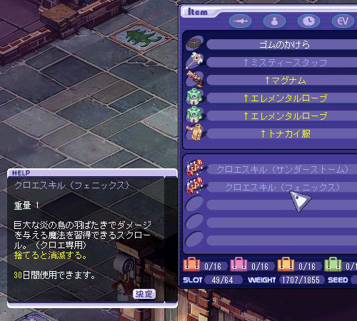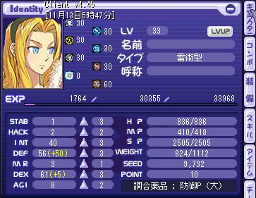 10月28日 ネット回線の契約変更が完了し、“比較的”ネット環境が安定。 虎とか柿とか栗とかのイベント三昧。 (“なぜか”記憶があやふやなため中略(ぇ) 11月3日 知り合いに社長来るんだけど来ないか?って言われたので TRPG会社の社長とTRPGしにお出かけヾ(´ω`*)ノ゛ワーィ やっぱり社長のGMはうまかったです(><*)勉強させていただきました! 11月8日 身内とTRPG。 あまりやったことのない色気のあるお姉さんの弓使いをやることにした。ウフフ(´ω`*) そしたら敵にさらわれ、あやうく死亡一歩手前。 最近このパターン多いです。 ガクリ |||orz 11月9日 某テチしゃまに紅靴E売るよと言われていたので1日で魔石をかき集め始める。 きついよ |||orz 少々強引な金策で運良く11個集まったのでそれ+ベレー+気持ちを献上。 おかげさまで無事に靴を入手できました!ヾ(´ω`*)ノアリガト! テチしゃま! 11月10日 私の誕生日。 11月10?11?日 クロエの誕生日!ということで!ヾ(´ω`*)ノ クロエの課金スキルがセールされると聞き、この機会に新しくクロエを育て始めることに。 基本的に朝狩りしかできないけどがんばってみる。 そしたら意外とサクサクあがるんですね、今のTWって。 大体1時間で3レベル上がる計算((==;))うわぁ……; SEED気にせず本気で狩る事にしたので、常時充電(中)+充電(大)の組み合わせ+期限羽(聖羽と同補正)でファイアーボール、ふぁいあーぼーる!! ○~ (><*) 交互に使うと10分使って5分使用禁止等のデメリットがなくなるので常時ALL+5~10の効果が得られることを確認...(’’;)。O(ずっと同種の調合アイテムだとダメだと思ってました;) 三日後。 ビフォー。 (毎日朝狩り3~4時間、土日で頑張る) レベル44で再振りして追加されたクエストをこなしたら、 狩りしていないのに55レベルに((==;))うわぁ~; アフター。 意外といけますね。うん。(==;)もうやりたくはないけど; ↓ 85歳以上じゃないと購入できないセールアイテム。 雷以外はネタスキルなので1000円が500円になるのは大きいです。 調子に乗って3つとも買っちゃった(*ノノ)テヘ おまけ。頑張った私にご褒美(ぇ クロエの誕生日イベント。ちびクロエが可愛い(*ノノ)キャッw コメント返信~ >の~ねえむさん 今更だけど了解しました! Σd(><*) むしろ、暇なときはINしてくださいなw 待ってるw と聞いてやっておりました秋のお餅イベント(ナステ婆さんの腰痛クエスト)。 数さえ開けれればアイテム強化カード系が手に入るという実は損をしないイベントだとわかっていたので、資金繰りに難航しつついざチャレンジ。 レアドロップ設定だったので幸運の紋章ありで挑戦。結果的に約750箱をゲット(高レベルだと難易度が上がるけどもっと手に入ったらしい)。 目当ては紅シリーズのレプリカ(セット揃えてもエフェクトでない)、その中でも紅靴E(クリ率高いとの噂)の一点のみ。 1箱開けるのに50kかけつつ、開ける開ける開けるヾ(>△<;)ノていやぁぁぁぁぁ! 結論:シャープカード×1、ハイシャープ×1、ハイスラッシュ×2、ハイマジック×2......。 見事に靴でませんでした・・・・・・・。||| orz どうやら、イベント開始後に段々と箱のドロップ率や高価商品の出る割合が落ちていったらしいです。 しょんぼりす。 まぁ、地味に出てくる期限付き羽のSSを大量に取ったのでちょこっとUP。 聖羽はどっちも10日間の期限付きですが、実は入手していた紅羽E×1は無期限! しかもクリ率高くコアなファンなら欲しがるような品! なんてすごいのかしら! ……まぁ、正直、羽より靴欲しかったんですけどね orz え?かぼちゃ祭りはどうなったかって? ネジしかでませんでしたよっ! |||| orz 結論:他の見た目装備0。 ネジ耳×8...orz コメント返信~ >の~ねえむさん おめありです!(><*) 久々にみんなで集まってチャットできて楽しかったよー(´ω`*)カフェさんとかそれまでに捕まえたかったなぁ・・・・・・; また機会あったらチャットしましょうね! 追伸:とある深夜に背伸びしたところ、死んでしまった私の目の前に現れた人のSS上げときます。