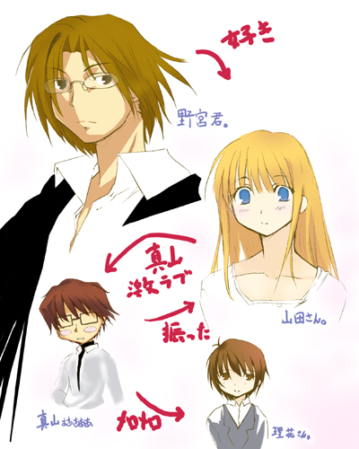 どんな作品かといいますと、 「ハチミツとクローバーⅡ」というアニメ。 いきなり、Ⅱですか!、と思わずツッコミつつ見てみることに。 第一話。前半。 ふむ。これは前作の話なのかな? まぁ、なんとなくだけど人物関係はわかった。たぶん。 第一話。後半。 あぁぁぁぁぁぁぁぁぁぁ!!! Σ( ̄□ ̄!!) ごめん、わかった!! 何でⅡからなのかわかった!!! これは、あれですね。 マキシがアニメで動くとこんな感じだということなのですね!! きっとそういうことなのですね!!(大興奮(ぁ *タイトルにも書きましたが、断じてマキシのイラストではありません!! いや、ほんとにマキシに見えるんですってば!! 野宮君って!! 「ハチミツとクローバーⅡ」 ここの人物紹介を見て、まんまマキシっぽいのが野宮君です。はい。 作品中でも、 好きな相手に対する意地の悪さとか、それでも大事に思っているのがわかるところとか、本当にマキシッポイ性格しております。うむ。 しかも、たまにカッコイイことしてくれるので、きゃぁぁぁぁぁ((((*ノωノ))))ぁぁぁぁw とか振るえつつ、見ておりました(苦笑 なお、山田さんが一見ティチに見えそうなのは、私の画力が至らないせいということにしておいてください・・・w (決してマキシとティt・・・(ry そんなこんながあり、一気に第五話まで観賞しちまいやした。こんちくしょうw 作品的には、なんて言いますか。 ……あぁ、アレダ。 なんでそんなにマキシなの?野宮君?(*ノノ)キャw(コラ まぁ、冗談はさておきw そうだなぁ、一種の詩ッポイかもしれません(心理描写とか。 基本的に、恋愛要素も結構強いんですが、そこがメインじゃなく、登場人物が各々の人生を悩みつつ過ごしていくお話なのかな? あ、全員が美術関係の生徒だったりデザイン会社の人だったりするものだから、余計に感じてしまうのかもね。 一種の詩のようだと。なんちゃって。 追伸。 なお、今やっているアニメらしいのですが、現在かなり主人公の話らしいので注意が必要だとか?(あらま 1+3+5話が野宮君の話(違)なので(6話以降は知らない)、DVDを借りてみるのも一興かと思われます(´ω`*)モフリw